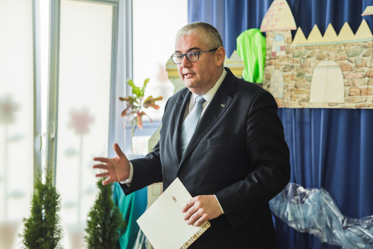 Gdańsk, ul. mjr. M. Słabego. Jubileusz 55-lecia przedszkola nr 43 Koniczynka. Nz. wiceprezydent Gdańska Piotr Kowalczuk