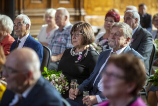 Prawie 30 par świętowało w Dworze Artusa jubileusze wspólnego pożycia. Z tej okazji odbyła się uroczystość podczas, której prezydent Aleksandra Dulkiewicz wręczyła okolicznościowe medale oraz dyplomy.