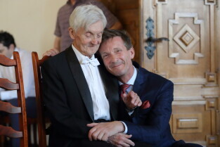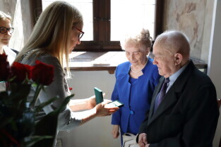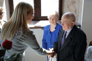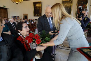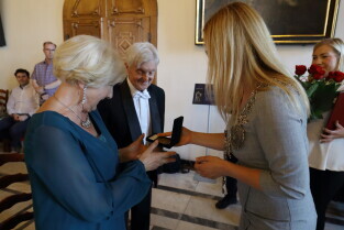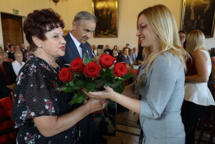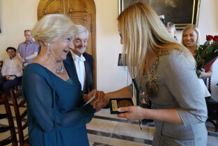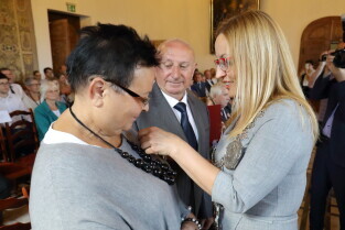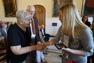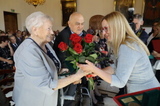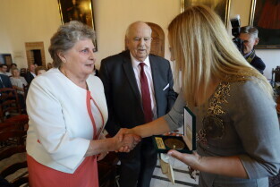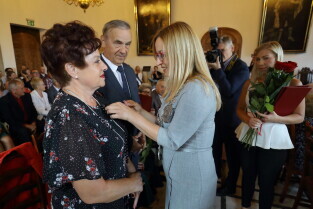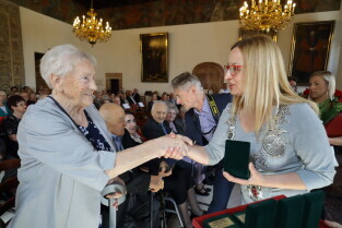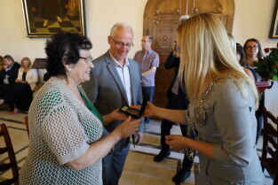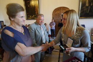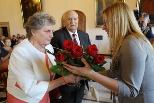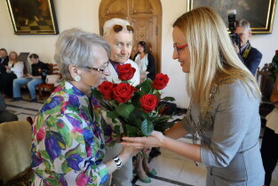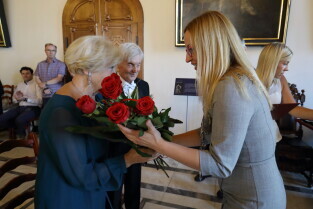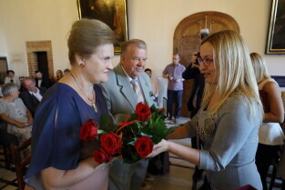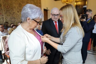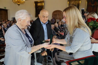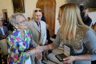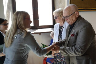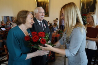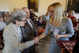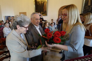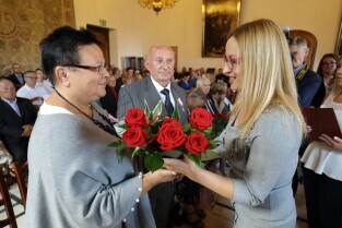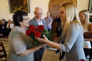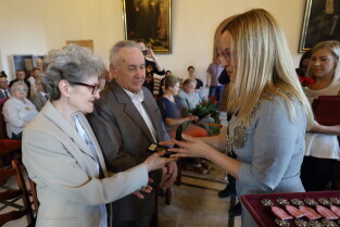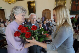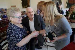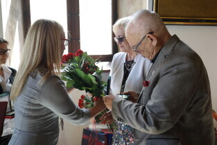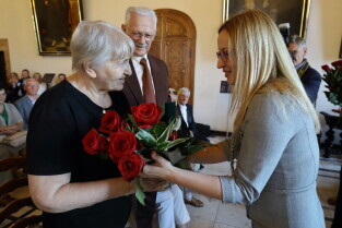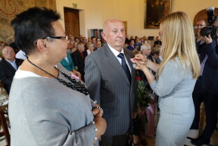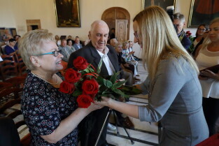 Gdańsk, Ratusz Głównego Miasta. Jubileusz Par Małżeńskich - "Złote Gody", podczas których Przewodnicząca Rady Miasta Gdańska Agnieszka Owczarczak wręczyła medale za długoletnie pożycie małżeńskie.