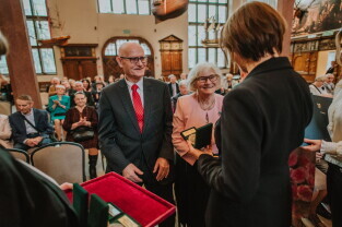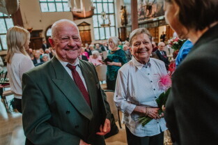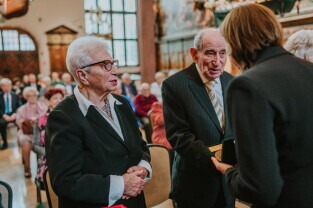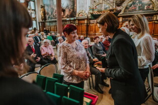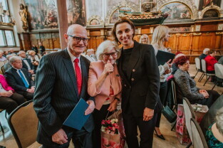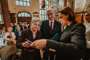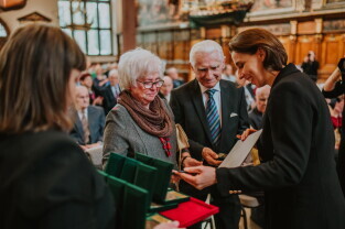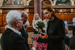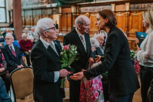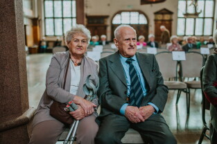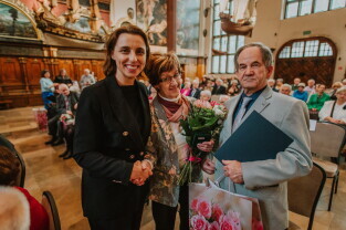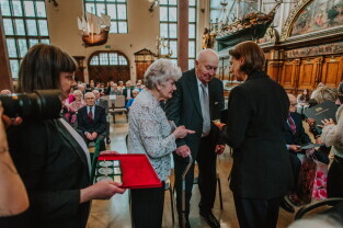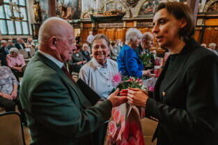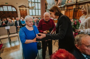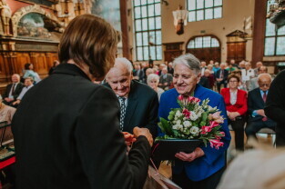 Gdańsk. Trzydzieści par świętowało swoje jubileusze w Dworze Artusa. W ceremonii udział wzięła Monika Chabior, zastępczyni Prezydenta ds. rozwoju społecznego i równego traktowania.