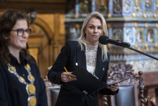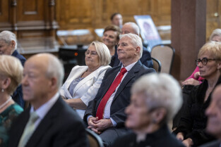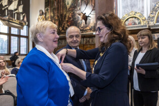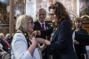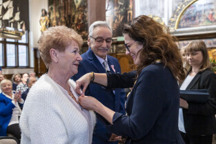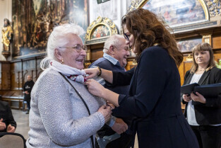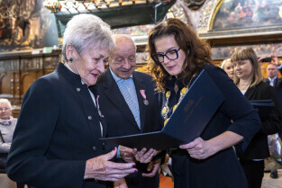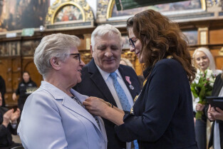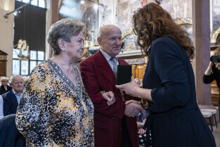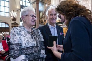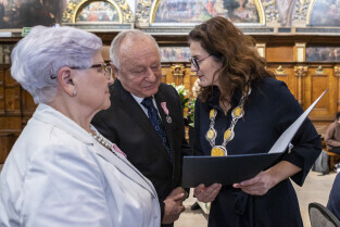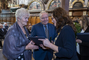 Gdańsk. W Dworze Artusa odbyły się uroczystości jubileuszowe par małżeńskich, obchodzących 60-lecie, 55-lecie, 50-lecie pożycia małżeńskiego. W imprezie udział wzięła Prezydent Aleksandra Dulkiewicz
