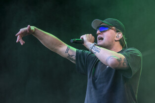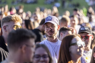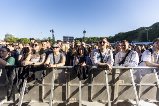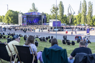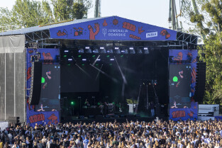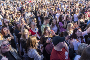 Gdańsk. Na Placu Zebrań Ludowych rozpoczęły się gdańskie Juwenalia. Prezydent Aleksandra Dulkiewicz przekazała studentom klucze do miasta. Nz. Na scenie Guzior