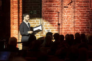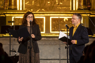 Gdańsk. Występ zespołu Le Poeme Harmonique zainaugurował tegoroczną edycję festiwalu Actus Humanus Nativitas w Centrum św. Jana. Nz. Koncert otworzyła Prezydent Aleksandra Dulkiewicz i Jacek Hawryluk