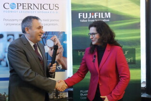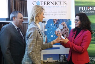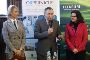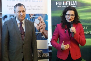 Gdańsk. Konferencja prasowa podsumowująca projekt „Rzeczywistość zaskakuje. Nie daj się zaskoczyć – zrób cytologię”. Nz. Piotr Wróblewski-spółka Copernicus i Pełniąca obowiązki Prezydenta Gdańska Aleksandra Dulkiewicz.