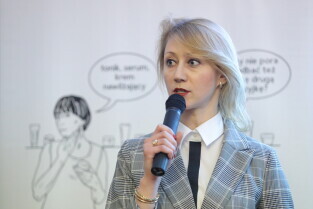 Gdańsk. Konferencja prasowa podsumowująca projekt „Rzeczywistość zaskakuje. Nie daj się zaskoczyć – zrób cytologię”. Nz. Dr. Magdalena Wojtkiewicz-Onkolog.
