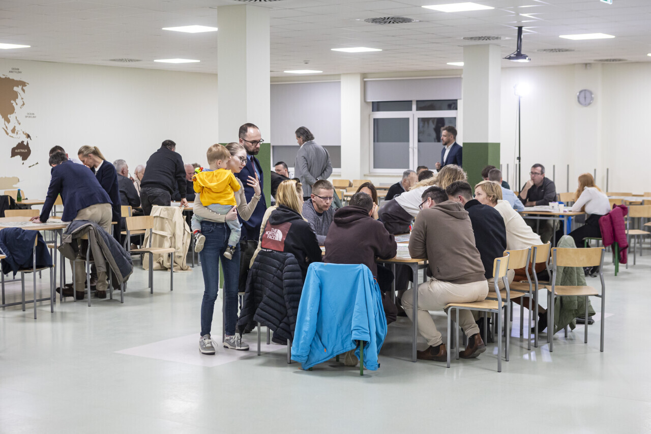 Gdańsk. Prezydent miasta Aleksandra Dulkiewicz, Paweł Orłowski Prezes Zarządu, InvestGDA oraz kierownik projektu w InvestGDA Michał Jamroż wzięli udział w pierwszych konsultacjach społecznych dla mieszkańców w sprawie rozwoju południowych dzielnic miasta wzdłuż planowanej linii PKM Południe, które odbyły się w Szkole Metropolitalnej w Kowalach