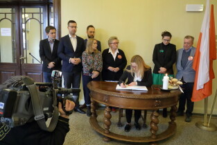 Gdańsk. Prezydent Aleksandra Dulkiewicz, przewodnicząca RMG Agnieszka Owczarczak oraz radni miejscy wpisali się do księgi kondolencyjnej dla Nowej Zelandii w związku z zamachem na meczety w miejscowości Christchurch.