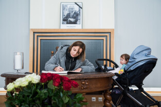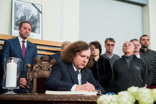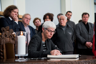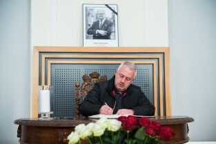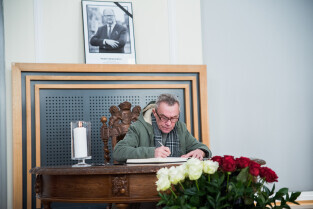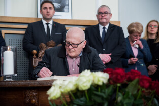 Gdańsk. Księga kondolencyjna w Urzędzie Miejskim. Tysiące gdańszczanek i gdańszczan żegnają swojego prezydenta. Nz. Aleksander Hall