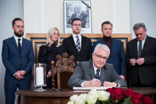 Gdańsk. Księga kondolencyjna w Urzędzie Miejskim. Tysiące gdańszczanek i gdańszczan żegnają swojego prezydenta. Nz. wiceprezydent Piotr Borawski