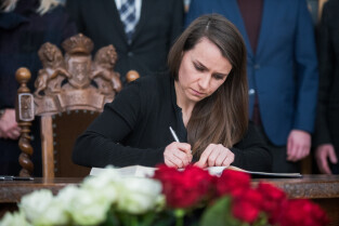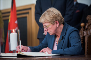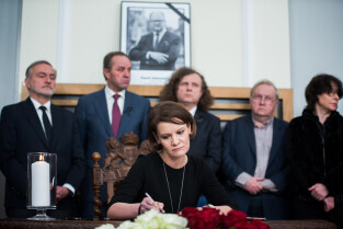Gdańsk. Księga kondolencyjna w Urzędzie Miejskim. Tysiące gdańszczanek i gdańszczan żegnają swojego prezydenta. Nz. posłanka Agnieszka Pomaska