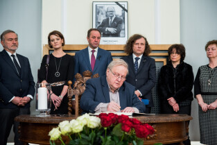 Gdańsk. Księga kondolencyjna w Urzędzie Miejskim. Tysiące gdańszczanek i gdańszczan żegnają swojego prezydenta. Nz. Mieczysław Struk -Marszałek Województwa Pomorskiego