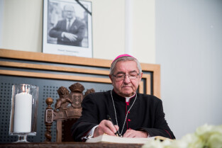Gdańsk. Księga kondolencyjna w Urzędzie Miejskim. Tysiące gdańszczanek i gdańszczan żegnają swojego prezydenta. Nz. Metropolita Gdański Arcybiskup Sławoj Leszek Głódź
