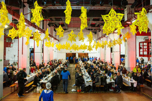 Centrum Stocznia Gdańska. Wigilia dla bezdomnych i potrzebujących w ramach akcji Kuchnia św. Mikołaja organizowana przez Dominikańskie Duszpasterstwo Akademickie