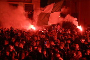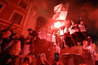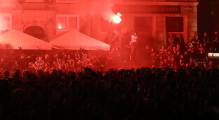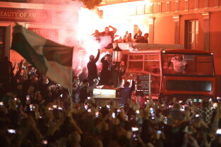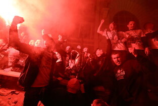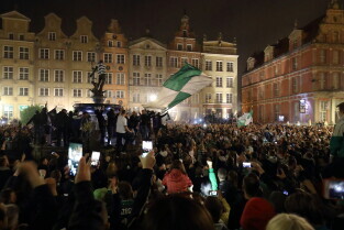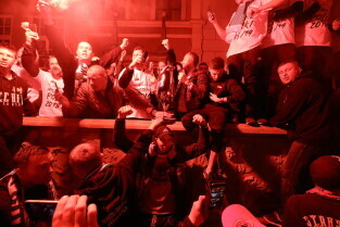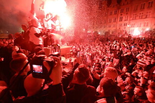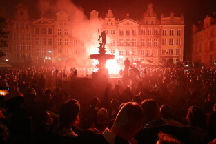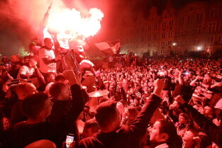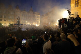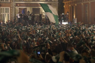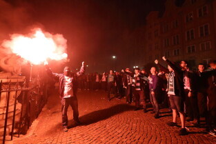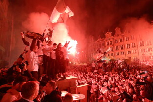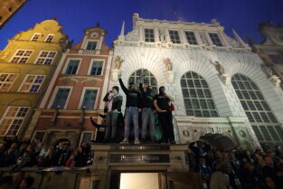 Gdańsk. Uroczysta feta Lechii Gdańsk z okazji zajęcia trzeciego miejsca w ekstraklasie piłki nożnej.
