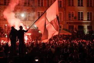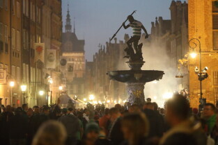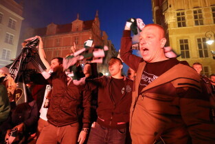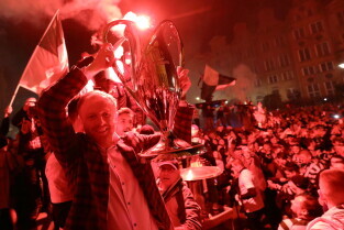 Gdańsk. Uroczysta feta Lechii Gdańsk z okazji zajęcia trzeciego miejsca w ekstraklasie piłki nożnej i zdobycie Pucharu Polski.