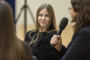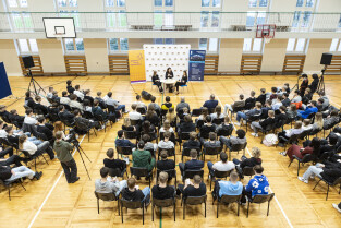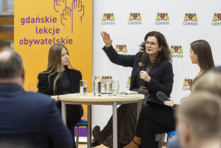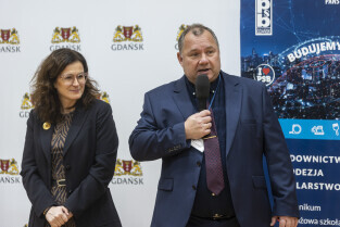 W ramach Gdańskich Lekcji Obywatelskich Prezydent Aleksandra Dulkiewicz spotkała się z uczniami Państwowych Szkół Budownictwa im. prof. Mariana Osińskiego.