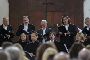 Gdańsk. Ekumeniczne nieszpory i muzyka dawnych gdańskich kompozytorów na powitanie gotyckiego ołtarza Pietas Domini w Bazylice Mariackiej. Nz. Chór Cappella Gedanensis