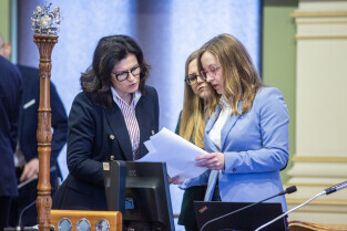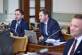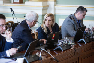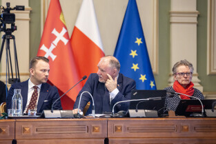 Gdańsk. LX Sesja Rady Miasta. Nz. Prezydium Rady Miasta, od lewej: Wiceprzewodniczący Mateusz Skarbek, Wiceprzewodniczący Piotr Gierszewski oraz Wiceprzewodnicząca Teresa Wasilewska