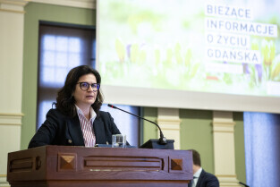 Gdańsk. LX Sesja Rady Miasta. Nz. Przy mikrofonie Prezydent Aleksandra Dulkiewicz