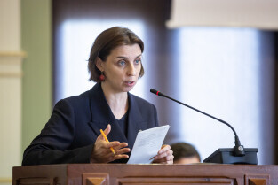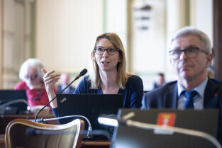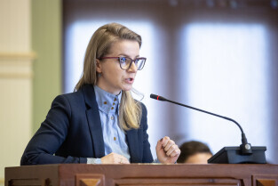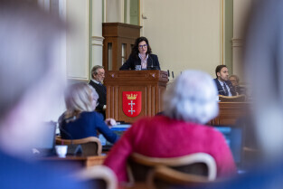 Gdańsk. LX Sesja Rady Miasta. Nz. Przy mikrofonie Monika Chabior, Zastępczyni Prezydenta ds. rozwoju społecznego i równego traktowania