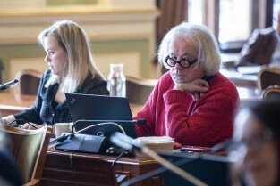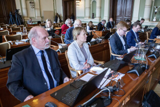 Gdańsk. LX Sesja Rady Miasta. Nz. Nz. Radni klubu PiS. od lewej: Romuald Plewa, Barbara Imianowska, Andrzej Skiba i Przemysław Majewski