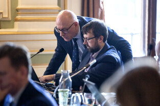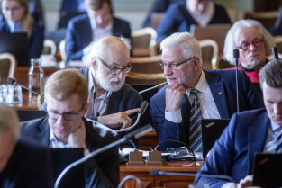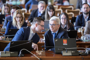 Gdańsk. LX Sesja Rady Miasta. Nz. radni klubu PiS, od lewej: Karol Rabenda i przewodniczący klubu Kazimierz Koralewski