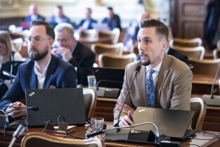 Gdańsk. LX Sesja Rady Miasta. Nz. Radni z klubu Koalicji Obywatelskiej, Krystian Kłos i Łukasz Bejm