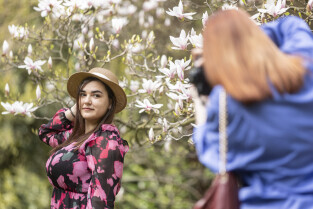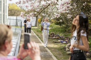 Gdańsk. Kwitnące Magnolie i tysiące innych kwiatów budzących się do życia po zimie można zobaczyć w Parku Oliwskim. Piękne widoki i letnie temperatury przyciągnęły do parku wielu mieszkańcow i turystów.