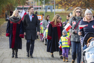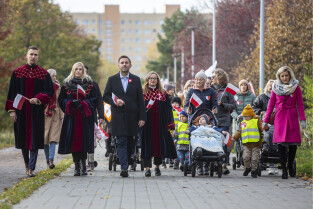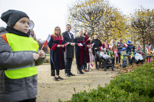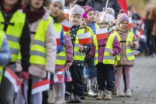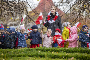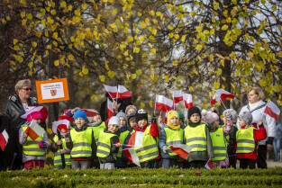 W parku Jana Pawła II na Zaspie, gdańskie przedszkolaki uczciły 105 rocznicę odzyskania niepodległości barwną paradą z udziałem między innymi Przewodniczącej Rady Miasta Agnieszki Owczarczak, Piotra Borawskiego, Z-cy Prezydenta ds. przedsiębiorczości i ochrony klimatu oraz radnych Emilii Lodzińskiej i Łukasza Bejma.