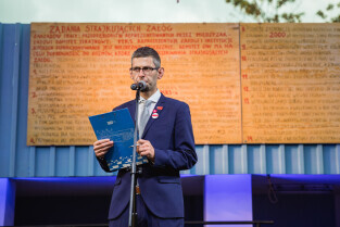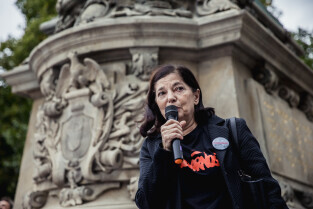 Marsz Porozumienie 2021 w Gdańsku. Nz. Bożena Rybicka-Grzywaczewska, współorganizatorka marszu, która w sierpniu 80 roku uczestniczyła w strajku w Stoczni Gdańskiej