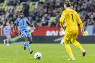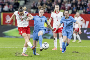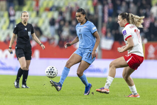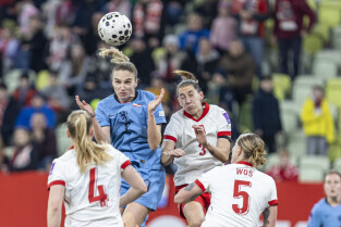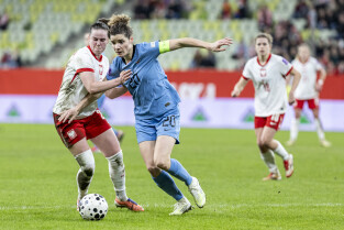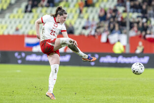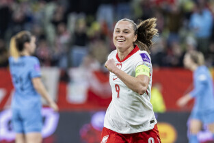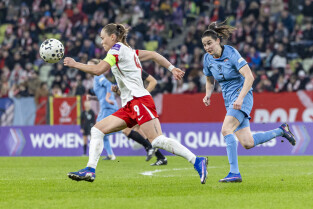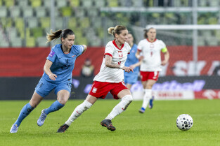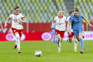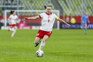 Gdańsk. Polki grały na stadionie Polsat Plus Arena z reprezentacją Holandii w meczu eliminacyjnym do Mistrzostw Świata w piłce nożnej kobiet. Nz. Ewa Pajor