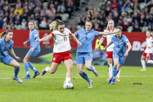 Gdańsk. Polki grały na stadionie Polsat Plus Arena z reprezentacją Holandii w meczu eliminacyjnym do Mistrzostw Świata w piłce nożnej kobietNz. Nz. Ewa Pajor