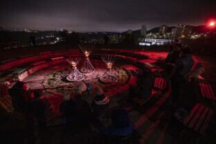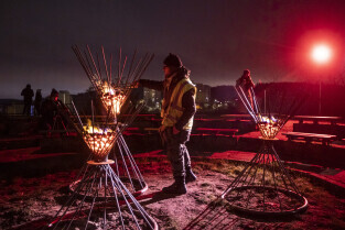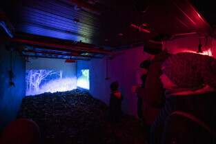 Gdańsk. Pod hasłem "Uzdrowisko Niedźwiednik" odbyła się w tej dzielnicy 15 edycja festiwalu Narracje. Organizatorem imprezy jest Instytut Kultury Miejskiej oraz Gdańska Galeria Miejska. Nz. Instalacja "Grota Dymna" autorstwa Kai Domińskiej i Wojciecha Gawrońskiego
