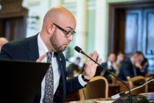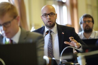 Sesja Rady Miasta Gdańsk w Nowym Ratuszu. Nz. radny Dawid Krupej