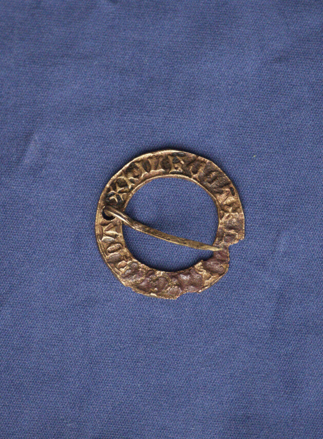 Częściowo widoczna inskrypcja na ramce zapinki.