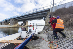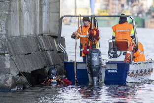 Gdańsk. Zespół nurków wraz ze specjalistami z Politechniki Gdańskiej sprawdza stan przyczółków i podpór Mostu Siennickiego.