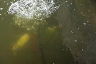 Gdańsk. Zespół nurków z Zakładu Usług Podwodnych i Technicznych Denis Andrzej, pobiera próbki z drewnianych pali podtrzymujących przyczułek Mostu Siennickiego od strony ul. Głębokiej. Nz. Nurek Wiktor Promiński i Szymon Chrobak