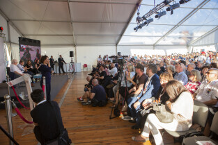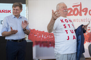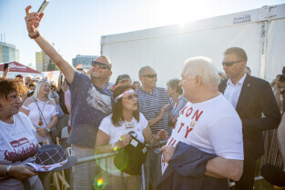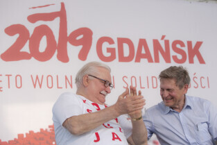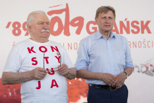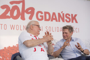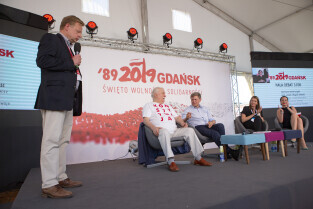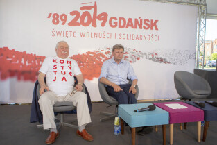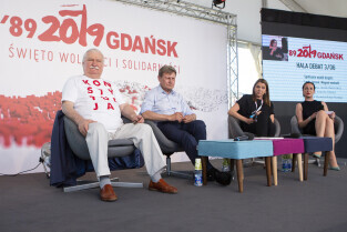 Debata "Lech - Leszek. Wygrać wolność" z udziałem Lecha Wałęsy i Leszka Balcerowicza. Obchody 30. rocznicy pierwszych częściowo wolnych wyborów 4 czerwca 1989 r. Gdańsk, Europejskie Centrum Solidarności