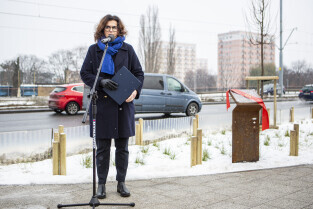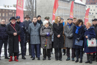 Odsłonięcie tablicy upamiętniającej budynek Getta