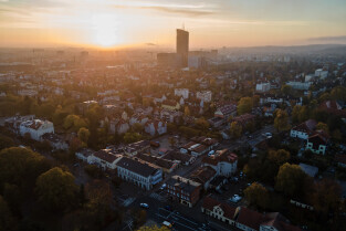 Widziana z lotu ptaka Oliwa budzi się do życia o wschodzie słońca. Na zdjęciach widać między innymi Park Oliwski, Pałac Opatów, Katedrę Oliwską, ulicę Opata Jacka Rybińskiego, ulicę Polanki, Ulicę Stary Rynek Oliwski, Oliwski Ratusz Kultury, wzgórze Pachołek oraz kościół Matki Bożej Królowej Korony Polskiej.