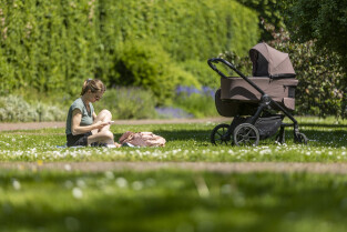 Gdańsk. Kilka zdjęć ze skąpanej w słońcu i zieleni Oliwy. Nz. Młoda mama ze swoim dzieckiem odpoczywają w Parku Oliwskim