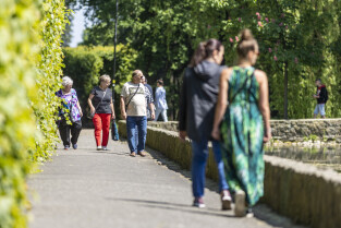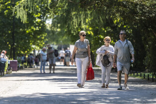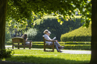 Gdańsk. Kilka zdjęć ze skąpanej w słońcu i zieleni Oliwy. Nz. Mieszkańcy i turyści korzystają z pięknej pogody w Parku Oliwskim