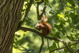 Gdańsk. Kilka zdjęć ze skąpanej w słońcu i zieleni Oliwy. Nz. Wiewiórka