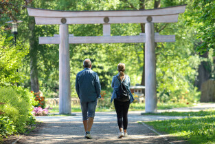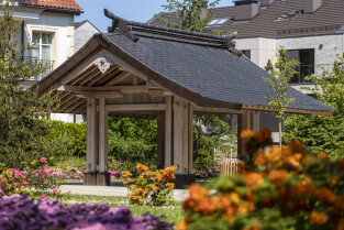 Gdańsk. Kilka zdjęć ze skąpanej w słońcu i zieleni Oliwy. Nz. Pagoda w ogrodzie Japońskim