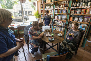 Gdańsk. Kilka zdjęć ze skąpanej w słońcu i zieleni Oliwy. Nz. Panie Hanna i Gabi, przyjaciółki z czasów nauki w IX Liceum Ogólnokształcącym, spotykają się regularnie w Kawiarni Kameralnej Książka i Kawa przy ul. Opata Jacka Rybińskiego by porozmawiać o książkach i o życiu.