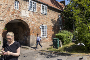 Gdańsk. Kilka zdjęć ze skąpanej w słońcu i zieleni Oliwy. Nz. Dom Bramny inaczej Dom Zarazy