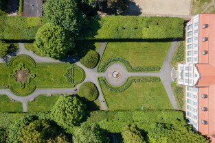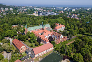 Gdańsk. Kilka zdjęć ze skąpanej w słońcu i zieleni Oliwy. Nz. Katedra Oliwska i przylegające do niej Gdańskie Seminarium Duchowne