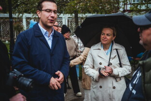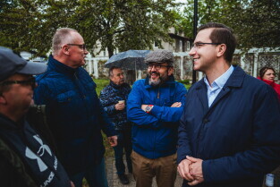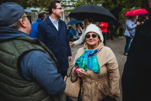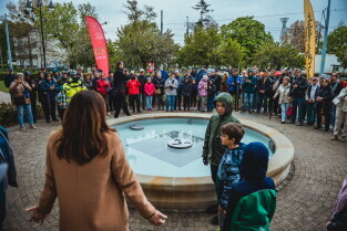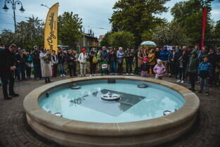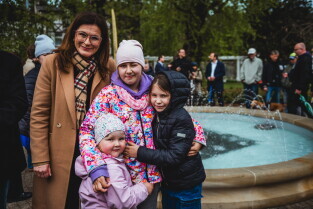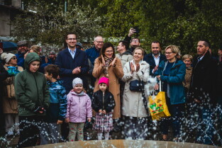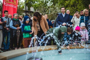 Gdańsk. Prezydent Aleksandra Dulkiewicz oraz radni miasta Katarzyna Czerniewska i Cezary Śpiewak-Dowbór wzięli udział w uroczystym otwarciu fontanny obok Domu Zdrojowego w Brzeźnie