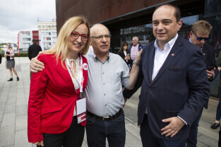 Otwarcie obchodów 30. rocznicy pierwszych wolnych wyborów 4 czerwca 1989 r. Gdańsk, Europejskie Centrum Solidarności. Nz. od lewej: Prezydent Gdańska Aleksandra Dulkiewicz, Przewodnicząca Rady Miasta Gdańska Agnieszka Owczarczak, poseł na Sejm RP Jerzy Borowczak