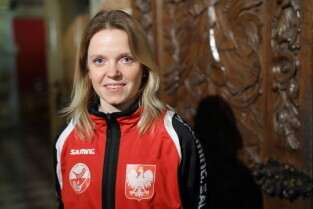 Gdańsk. Uroczyste otwarcie turnieju Eliminacji Mistrzostw Świata w Unihokeju Kobiet. Nz. Kapitan Reprezentacji Polski-Agata Plechan.